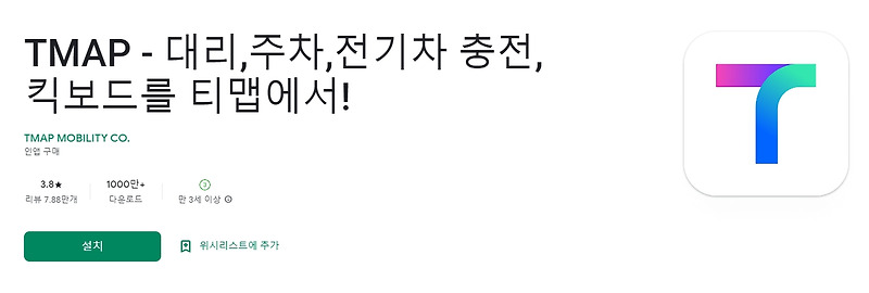 - 설치 버튼 클릭 : Tmap 앱을 선택한 후 '설치' 버튼을 클릭합니다.